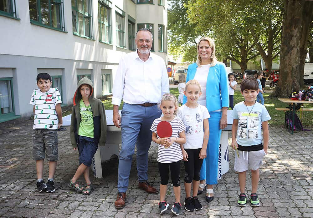 Landeshauptmann Hans Peter Doskozil und Landesrätin Daniela Winkler beim Kick Off der Lern- und Feriencamps in Pinkafeld (Archivbild)