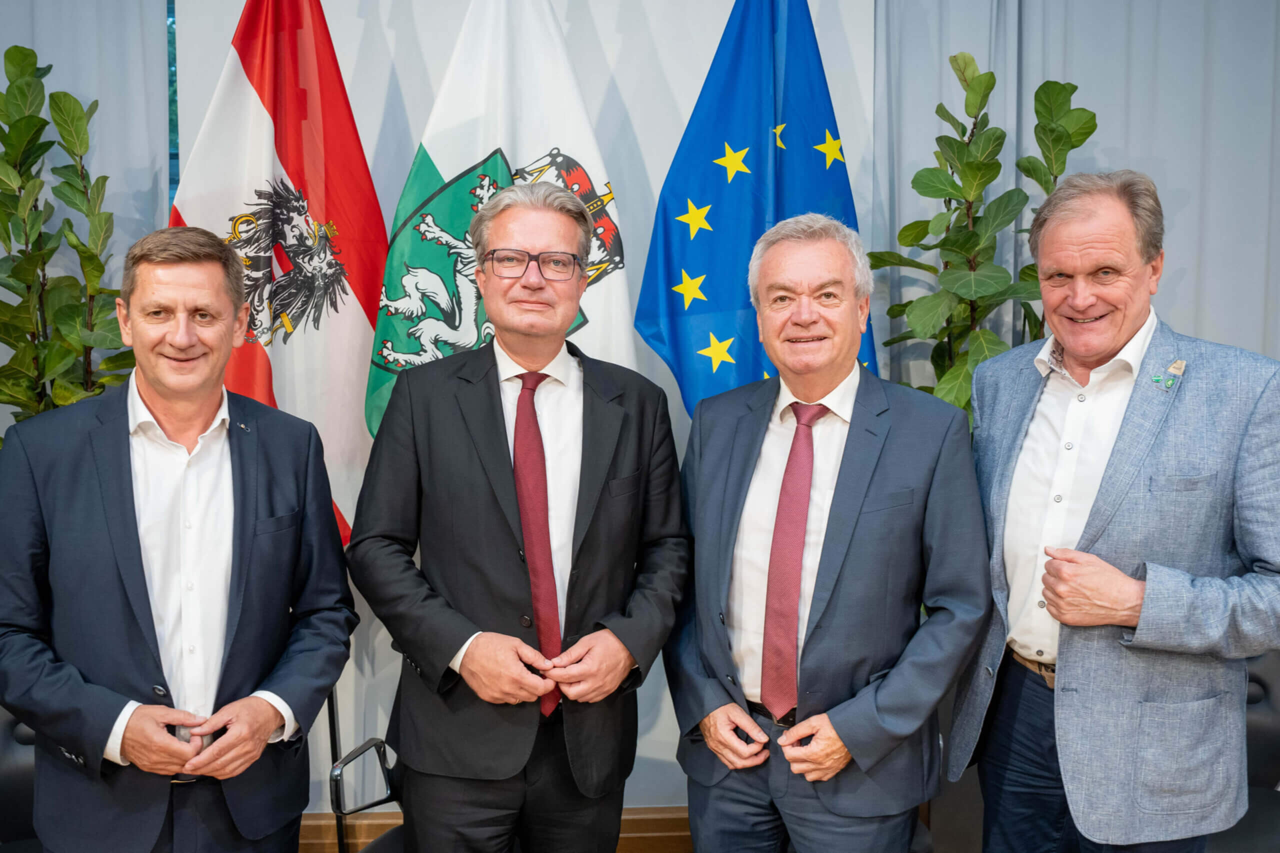 Bgm. Kurt Wallner, LH Christopher Drexler, LH-Stv. Anton Lang und LAbg. Bgm. Erwin Dirnberger (v.l.)