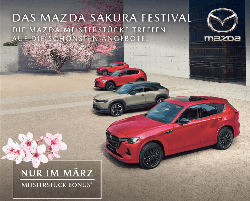 Aber ACHTUNG: Der Meisterstück-Bonus ist eine limitierte Aktion, die nur beim Sakura Festival im März für alle Mazda Neuwagen-Käufe gilt.