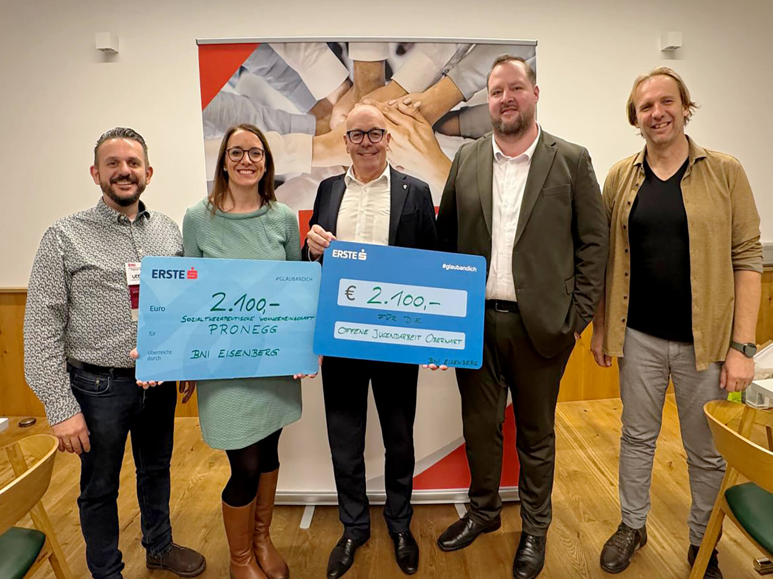 Jede Unternehmerin und jeder Unternehmer der Netzwerkgruppe BNI Eisenberg hat einen Beitrag zu der Spendenaktion geleistet. Dabei wurde die Hälfte der gesammelten Summe, nämlich 2.100 Euro, an die Offene Jugendarbeit Oberwart übergeben. Während eines BNI-Meetings nahm Bürgermeister Georg Rosner den Scheck persönlich in Empfang und bedankte sich herzlich für das Engagement. Diese großzügige Spende ist ein schönes Zeichen der Solidarität in unserer Region. Mein besonderer Dank gilt den Unternehmerinnen und Unternehmern des BNI Eisenberg für ihren Einsatz und ihre Unterstützung“, betonte Rosner.