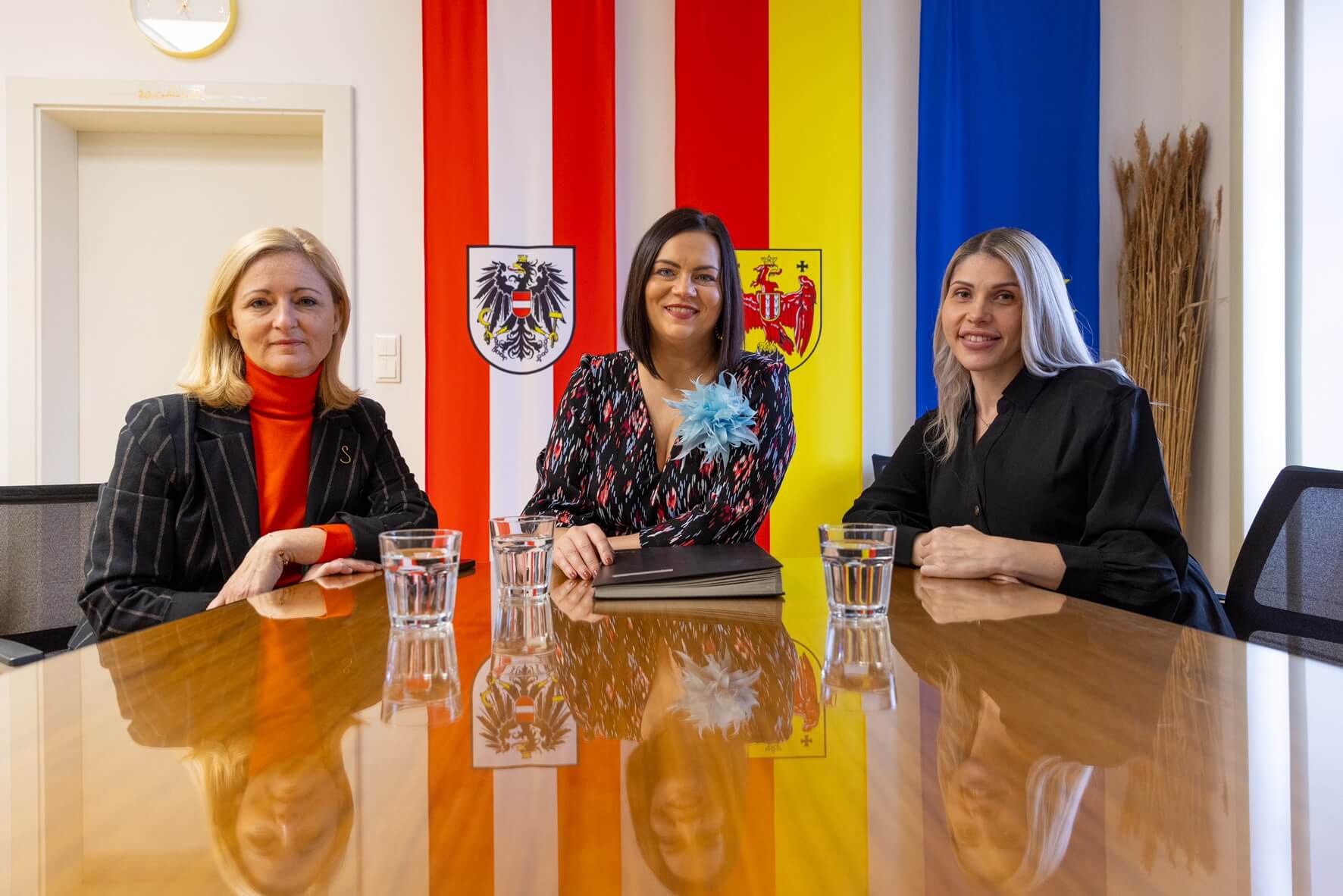Foto: (v.l) Rita Stenger, Landeshauptmann-Stellvertreterin Astrid Eisenkopf und Kerstin Altenburger, alleinerziehende Mutter von Kindern aus Sankt Andrä am Zicksee