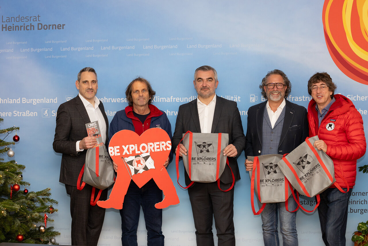 v.l.: ÖBB Regionalmanager Christof Hermann, Michael Oberhauser (Verein 24 Stunden Burgenland), Landesrat Heinrich Dorner, Helmut Hauser (ÖBB) und Josef Burkhardt (Verein 24 Stunden Burgenland) freuen sich auf die Burgenland Extrem Tour 2025