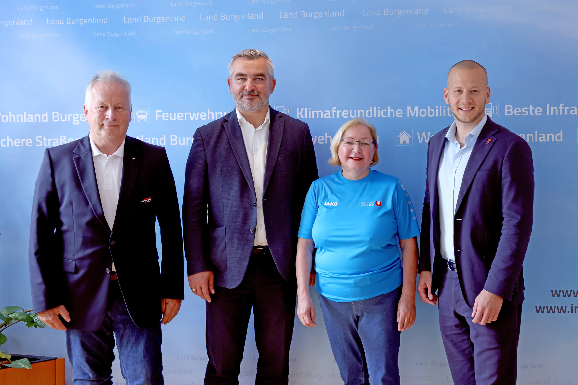 Das Sportland Burgenland und die Sportdachverbände ASVÖ, ASKÖ und Sportunion suchen gemeinsam Burgenlands Sportstars von Morgen (v.l.) ASVÖ Burgenland Präsident Robert Zsifkovits, Landesrat Heinrich Dorner, Präsidentin der Sportunion Burgenland Karin Ofner, ASKÖ Burgenland Präsident Maximilian Köllner.