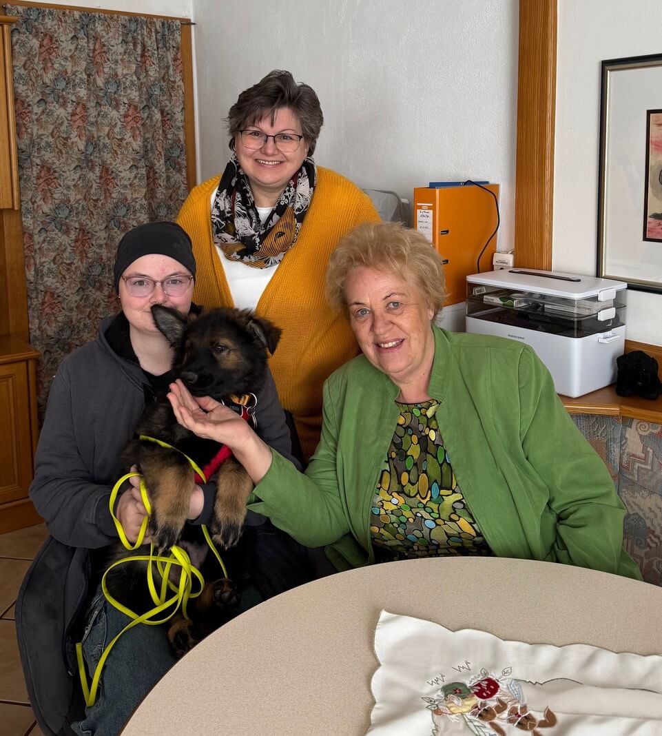 Manuela Fussi mit Welpe Thranduil, Sabine Fussi und Volkshilfe Burgenland-Präsidentin Verena Dunst