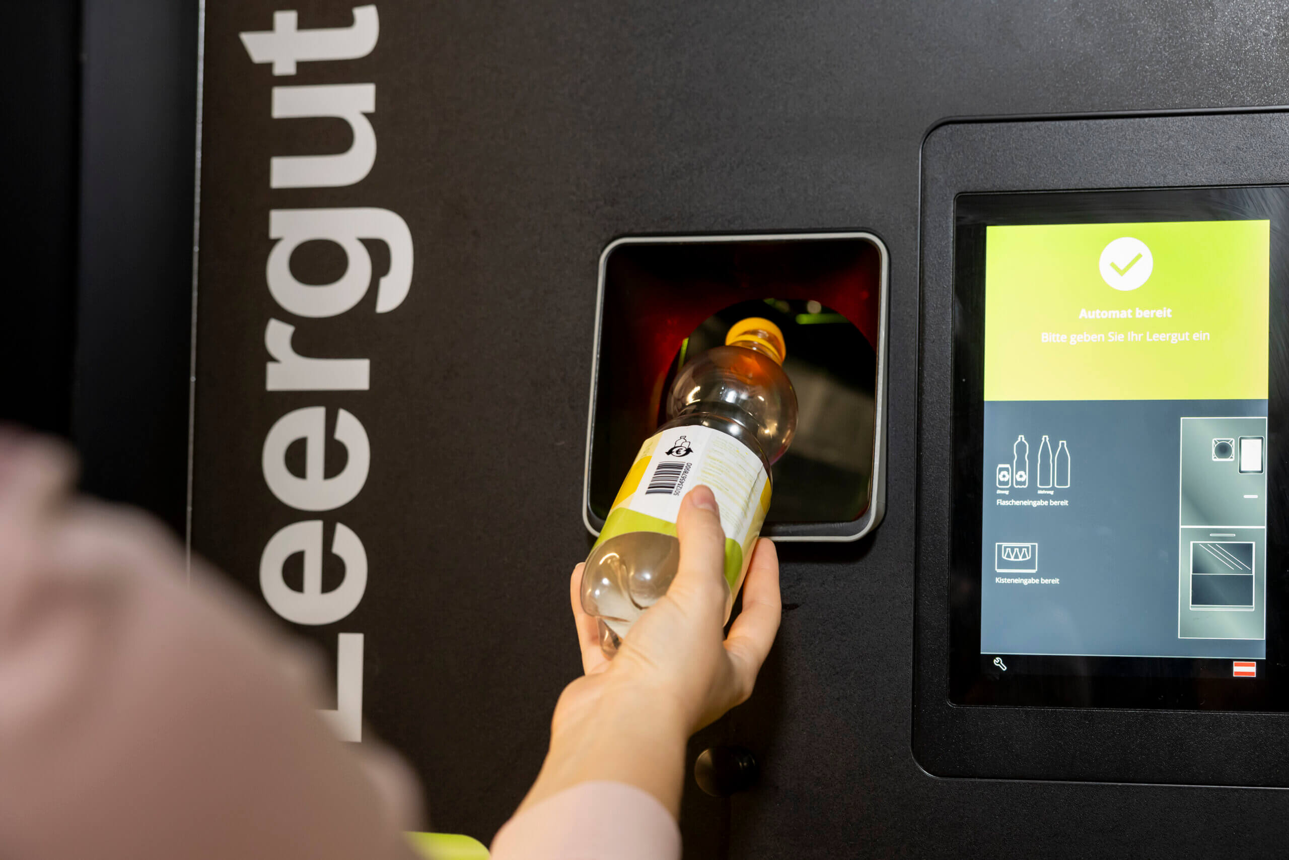Rund 90 % der Pfandgebinde werden über Rücknahmeautomaten im Lebensmittelhandel abgegeben. Diese erkennen, zählen und pressen die Verpackungen direkt vor Ort. Über die technischen Prozesse und KI-Systeme, die im Hintergrund ablaufen, wollte die EWP Recycling Pfand Österreich GmbH, die für die Organisation und Abwicklung des Einwegpfandsystems zuständig ist, keine Angaben machen. Nach der Rücknahme gelangen die Gebinde jedenfalls über bestehende Lieferlogistik in die Zentrallager der Handelsketten, werden dort zu größeren Ballen verdichtet und schließlich in Sortieranlagen weitertransportiert.