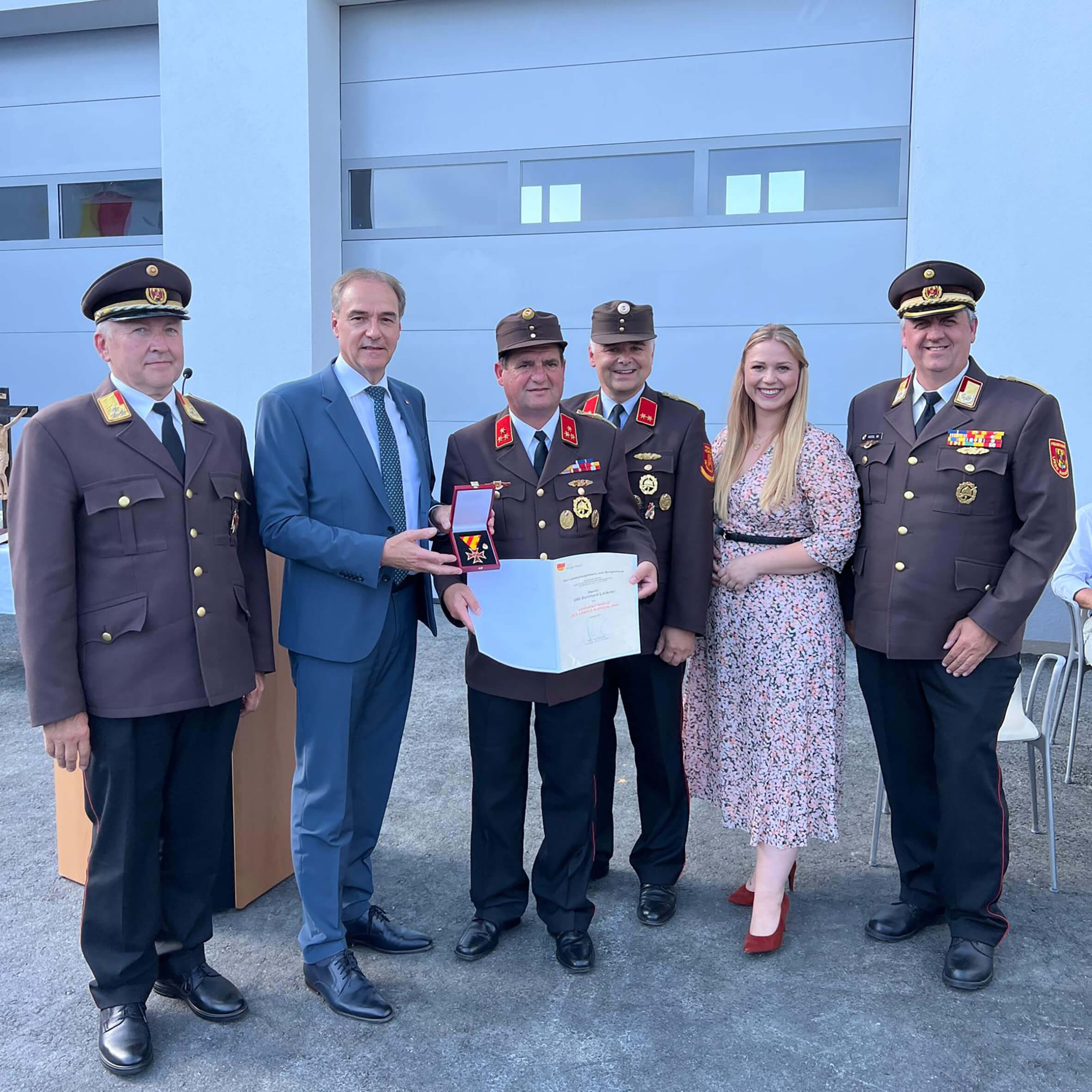 Landesrat Dr. Leonhard Schneemann eröffnete das neue Feuerwehr- und Vereinshaus im Ortsteil Holzschlag (Gemeinde Unterkohlstätten).
