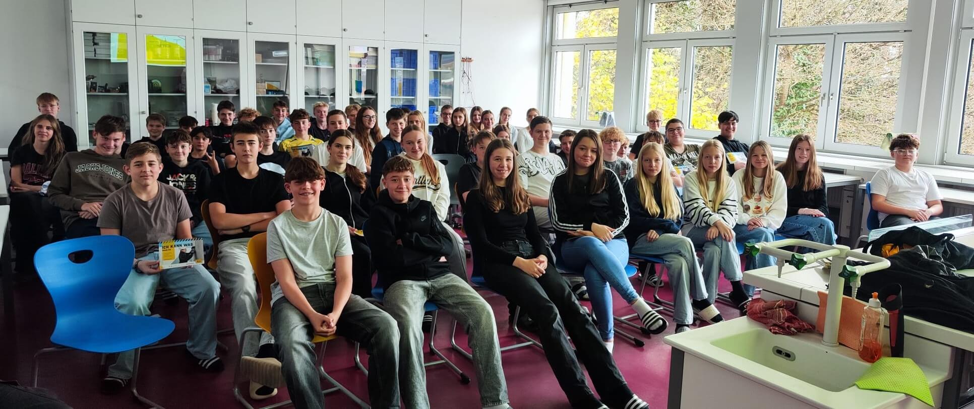 Schüler:innen der MS Oberschützen lauschen dem Lehrlingsexperten Patrick Zenz und durften wie andere Klassen im Bezirk Oberwart und Güssing Fragen zum Thema Lehre am Bau stellen.