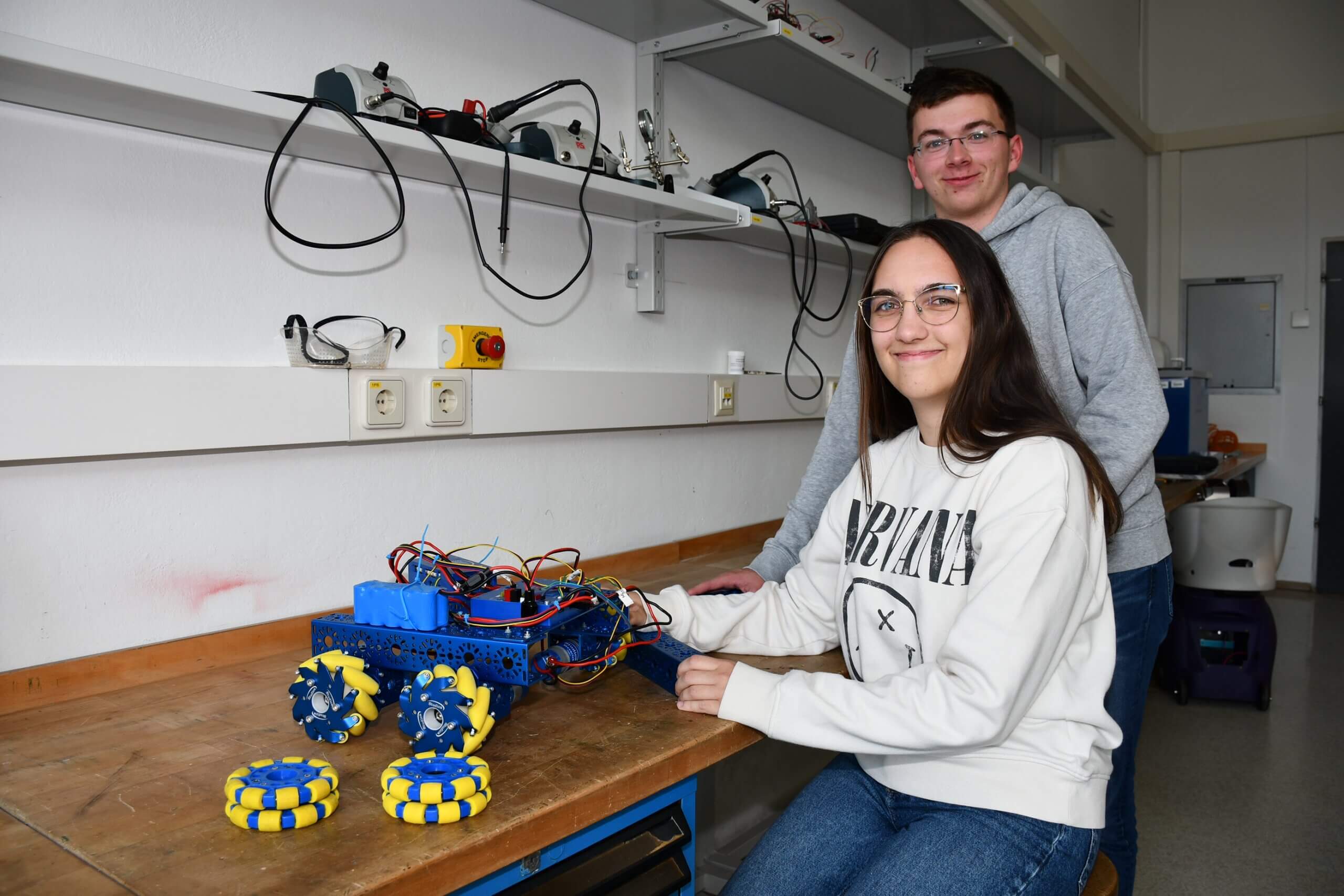 Emily Wachter und Lukas Thier nutzen den Makerspace außerhalb der Unterrichtszeit für den Bau ihres Roboters.
