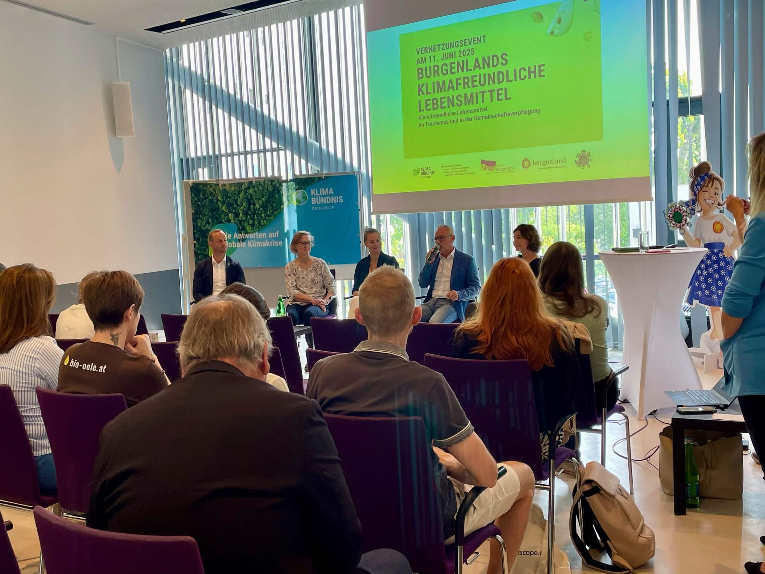 Mehrere Betriebe berichteten über ihre Erfahrungen mit regionaler Beschaffung. So schilderten etwa Vertreter:innen der St. Martins Therme und des Hotels Lodge, wie sie erfolgreich mit lokalen Produzenten zusammenarbeiten. Die Praxisbeispiele zeigten, dass eine klimafreundliche Ernährung nicht nur theoretisch möglich ist, sondern bereits in verschiedenen Bereichen des burgenländischen Tourismusalltags umgesetzt wird.