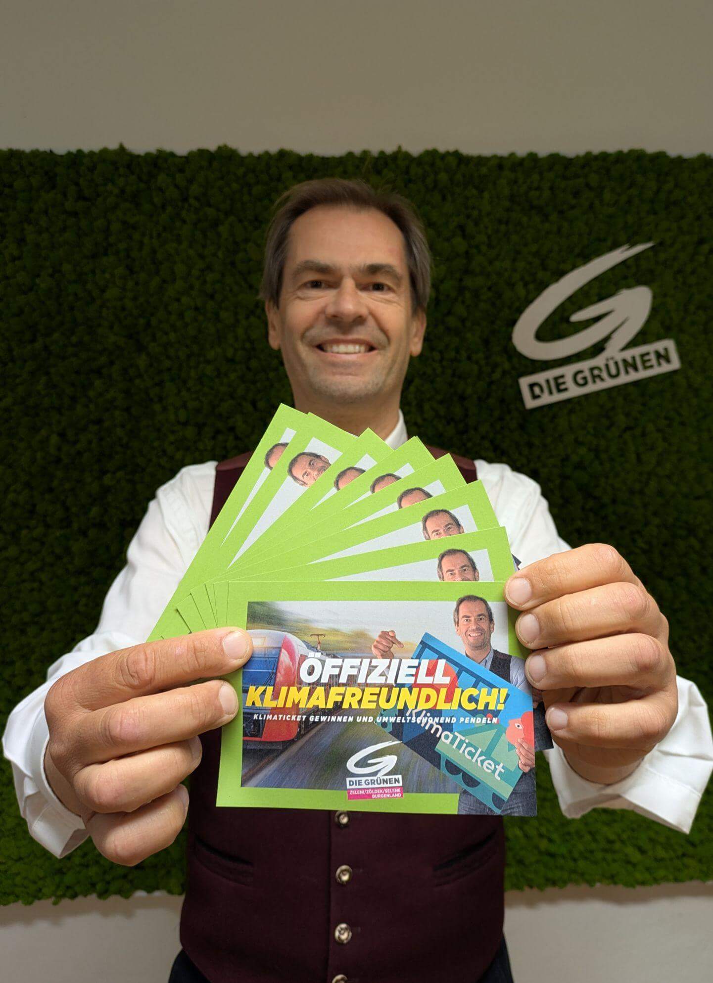 GRÜNEN-Klubobmann Wolfgang Spitzmüller verlost ein Klimaticket