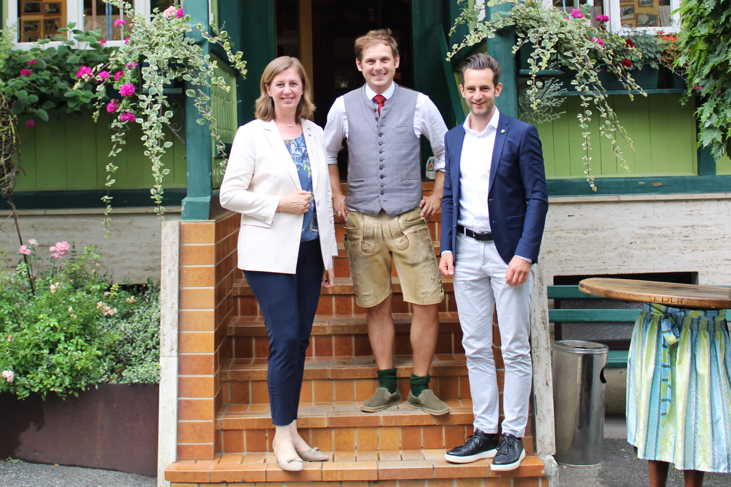 Tourismuslandesrätin Barbara Eibinger-Miedl, David Pack (Gasthof Pack „Zur Lebing Au“) und Landtagsabgeordneter Lukas Schnitzer. David Pack hat in seinen Traditionsgasthof investiert und ist weiterhin ein Garant für steirische Wirtshauskultur und den Erhalt wertvoller Arbeitsplätze in der Region.