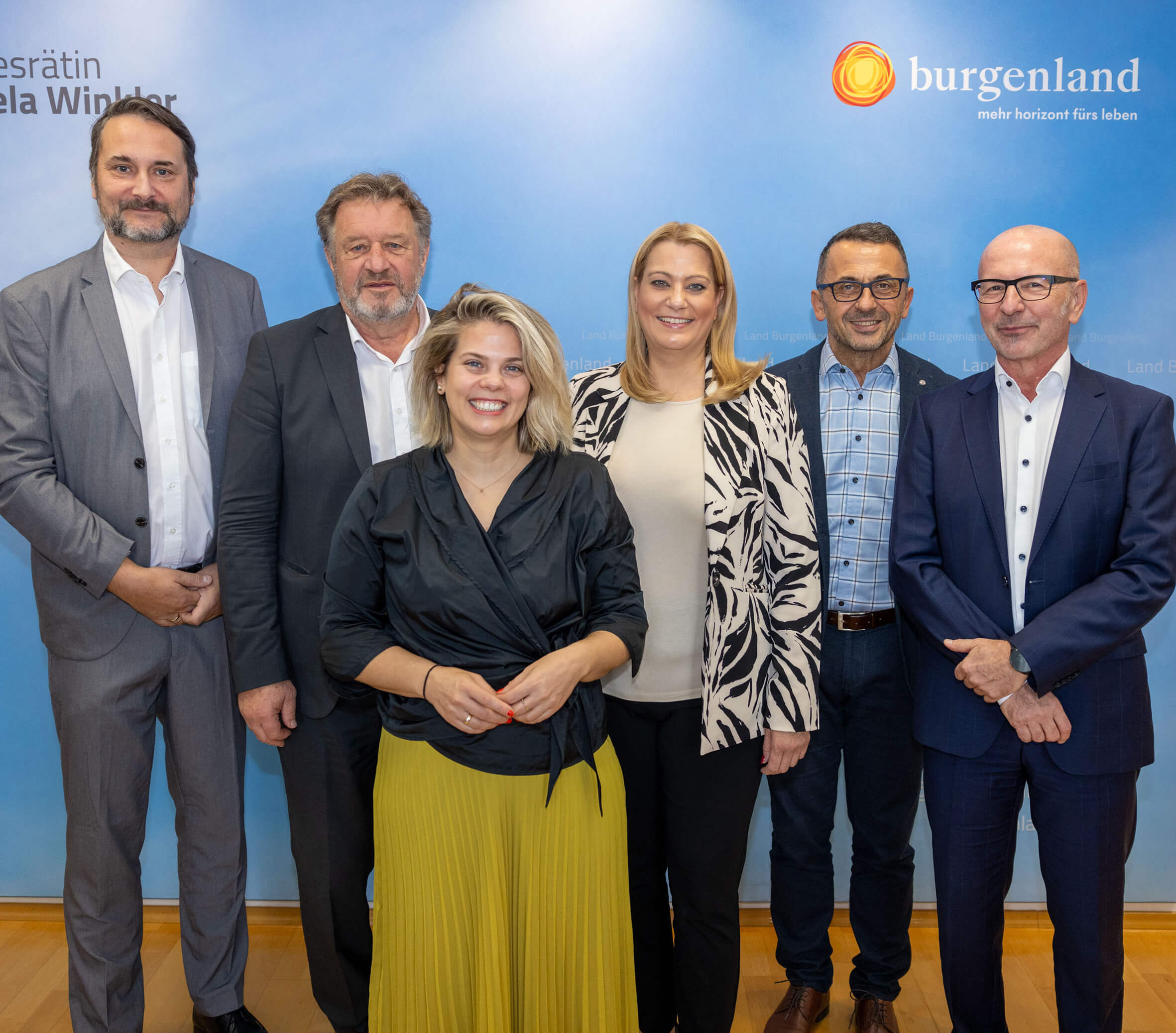 Bernhard Ozlsberger/Schatzmeister, Alfred Lehner/Vizepräsident, Claudia Priber/Präsidentin, Landesrätin Daniela Winkler, Gerald Pangl, Gerhard Gutschik/Geschäftsführer Musikschulwerk