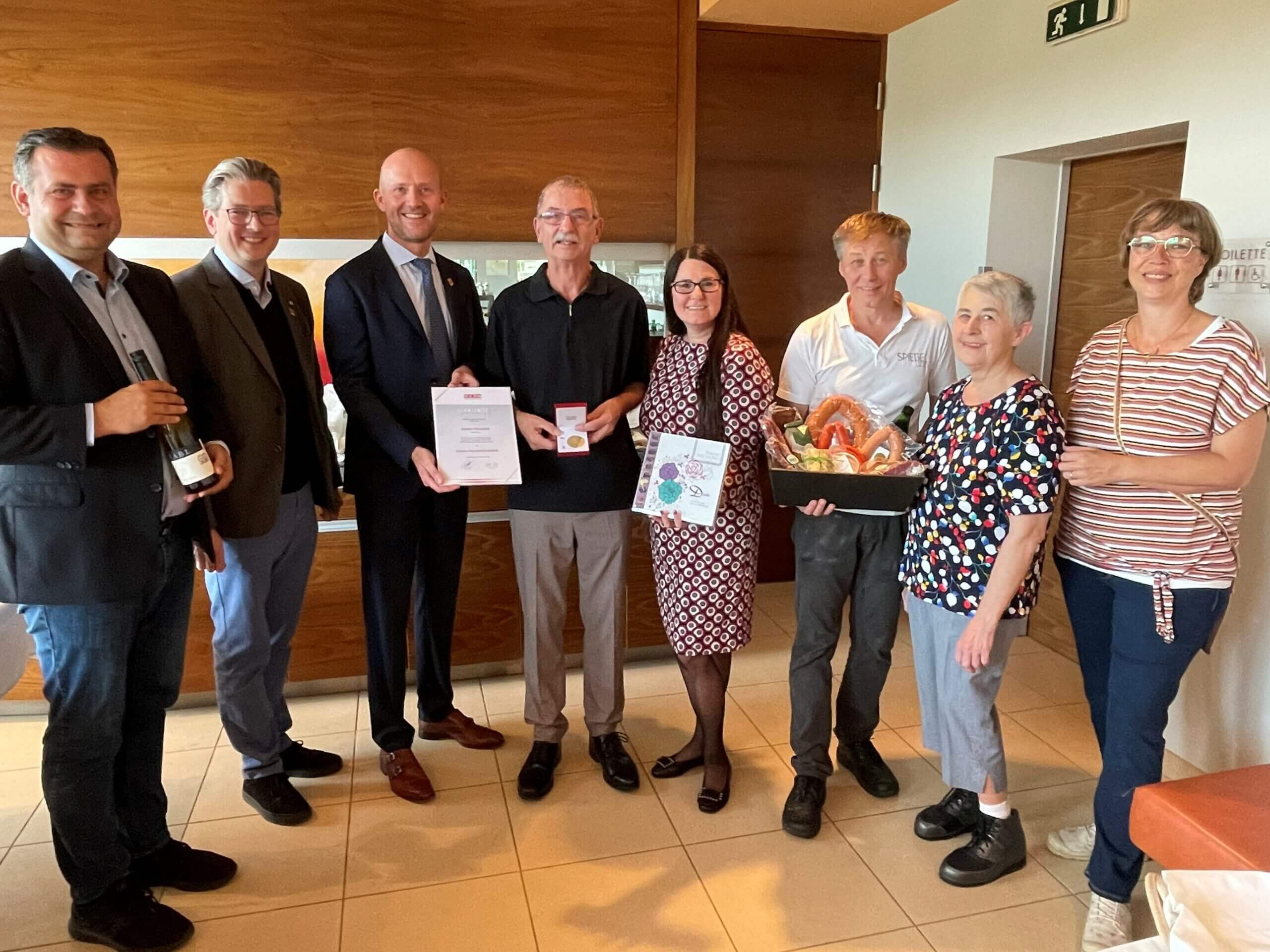 Johann Breineder begann seine Lehre als Koch/Kellner im Gasthaus Lang in Mönichkirchen. Bereits im zweiten Lehrjahr wechselte er in das damalige Gasthaus Spiegel nach Bad Tatzmannsdorf und absolvierte dort seine Lehre. Seit 1984 arbeitet Breineder bereits im Restaurant Spiegel – bis heute zu seiner Pensionierung. Bei der feierlichen Übergabe waren neben der Familie Spiegel auch Bürgermeister Stefan Laimer sowie mehrere Vertreterinnen und Vertreter der Wirtschaft mit dabei: Vizepräsident Martin Horvath und Regionalstellenleiter Christoph Winkler.
