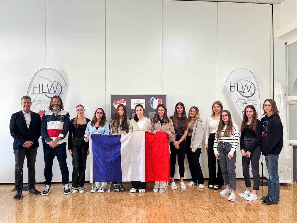 Ein ganz besonderer Besuch stand am Stundenplan für die Französischgruppen der HLW Pinkafeld: France Tour vom Institut Français (französisches Kulturinstitut) in Wien stattete den Schülerinnen einen Besuch ab und hatte auch Preise im Gepäck. Elena Zapfel, Leonie Harter und Rosa Pertl gewannen den ersten Platz beim diesjährigen Pâtisserie-Wettbewerb „Le Macaron d’Or“ (Kombination Sprach- und Kochwettbewerb). Die Schülerinnen hatten die Aufgabe, ein originelles Dessert zu kreieren, welches die französische und österreichische Küche vereint.