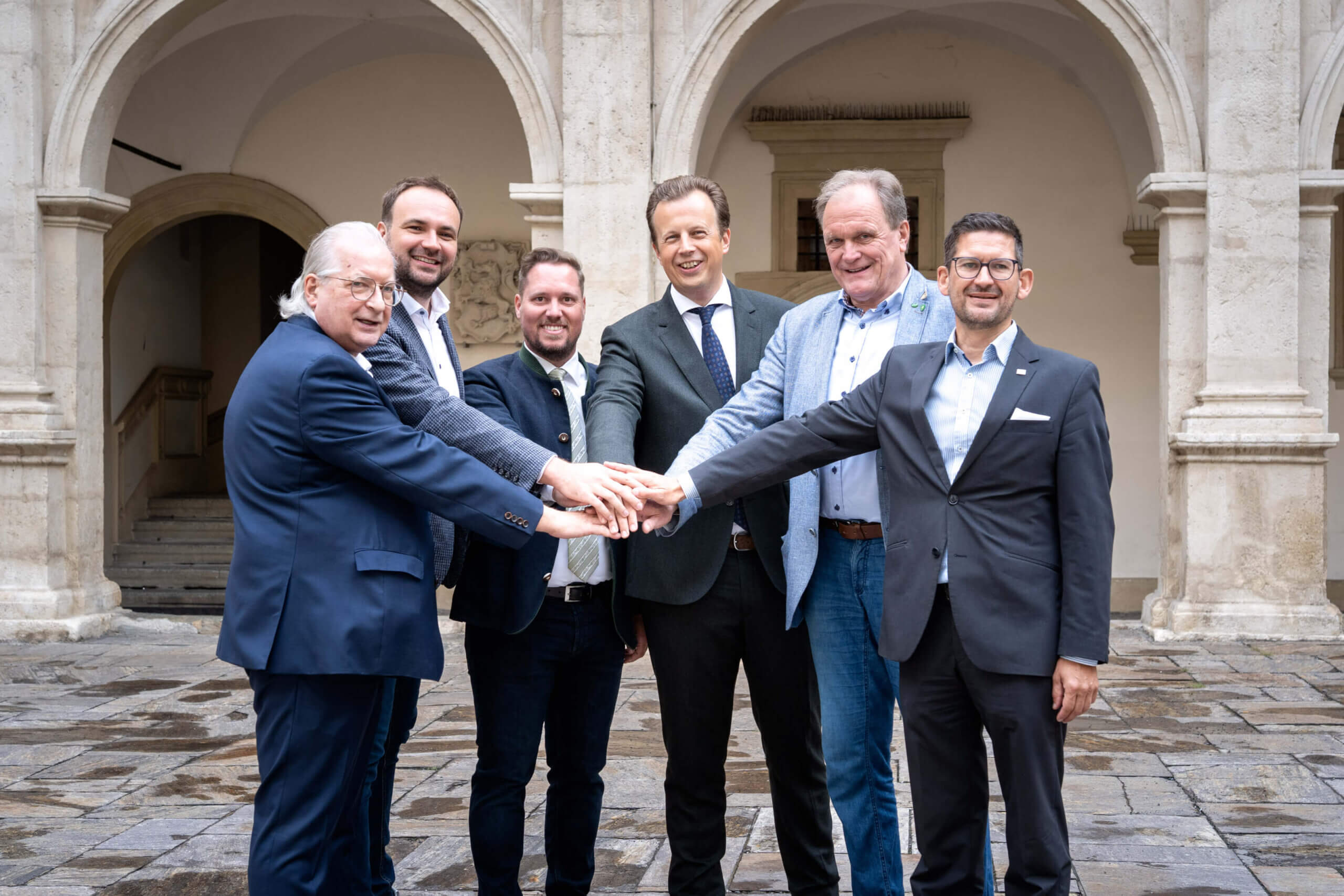 Günther Hirschberger (Ärztekammer), Michael Sacherer (Ärztekammer), Marco Triller, Karlheinz Kornhäusl, Erwin Dirnberger (Gemeindebund) und Michael Leitgeb (Städtebund) (v.l.)