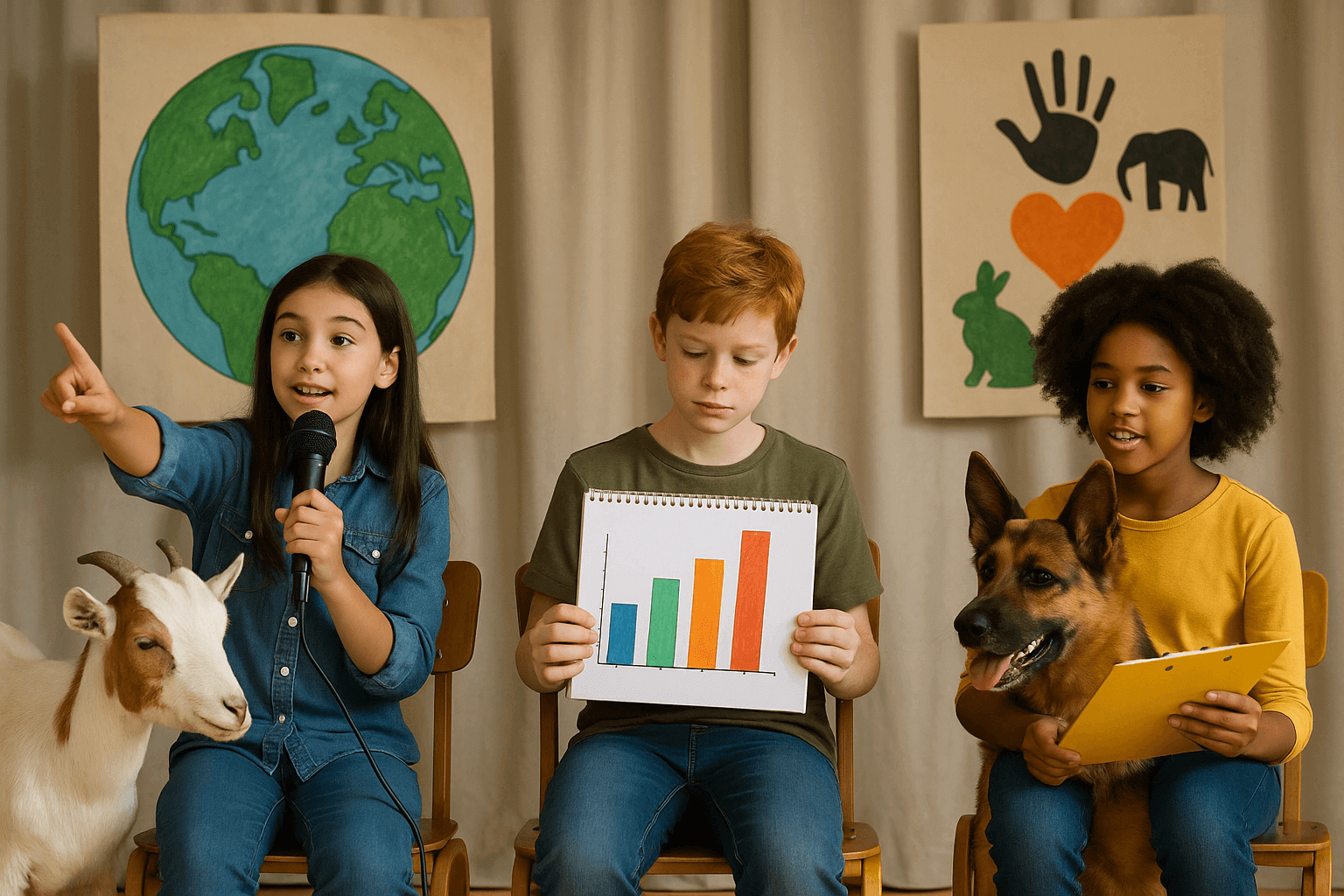 Die Kinder-Tierschutzkonferenz bietet Schüler:innen die Möglichkeit, ihr Wissen vor Publikum zu präsentieren und eigene Ideen zum Schutz von Tieren einzubringen. Neben Wissensvermittlung steht vor allem das Erleben im Mittelpunkt.