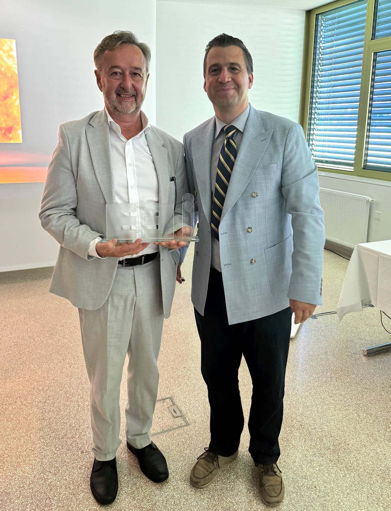 Prim. Univ.-Prof. Dr. Mag. Martin Pichler, MBA (r.) überreichte Wolfgang Stangl den ersten „Wolfgang Stangl Innovationspreis“.
