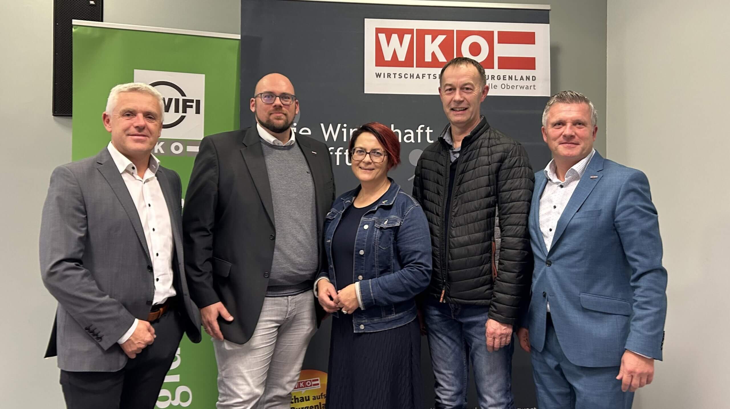 Die Referenten Martin Ulreich und Franz-Stephan Ivancsics, Obfrau Tanja Stöckl, Obfrau-Stellvertreter Gottfried Loibl und Fachgruppengeschäftsführer Bernhard Dillhof (v. l.)