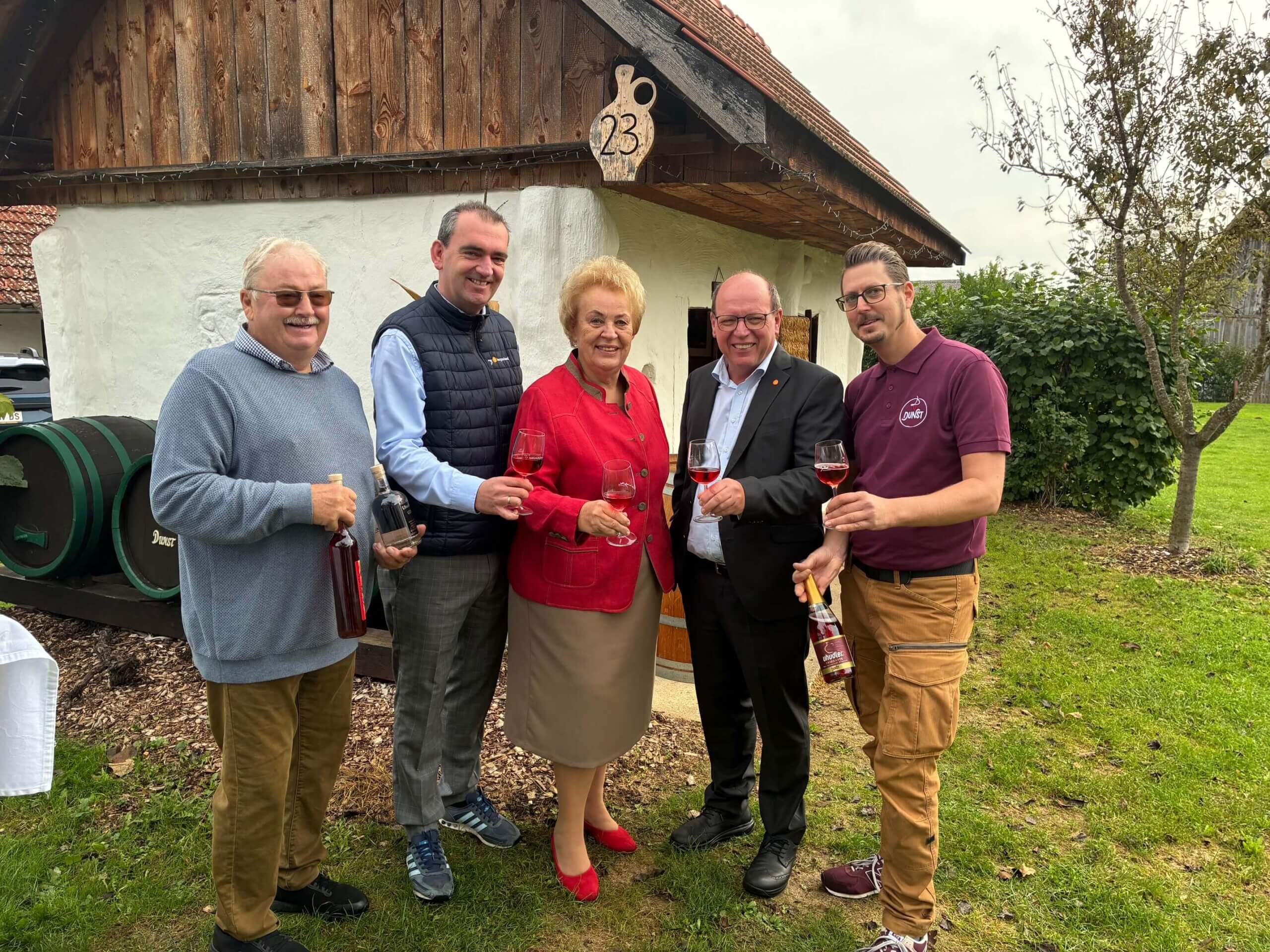 Verena Dunst erinnerte sich an die schwierige Zeit: „Die Rodungsbescheide waren damals schon draußen.“ Das habe gerade noch verhindert werden können. Zu diesem Zeitpunkt gab es im Bezirk Güssing lediglich neun Hektar Anbaufläche. Heute werden dort rund 100 Hektar bewirtschaftet, im Bezirk Jennersdorf kommen weitere 35 Hektar hinzu. Insgesamt entstehen aus der Uhudlertraube derzeit rund 700.000 Flaschen Wein pro Jahr.