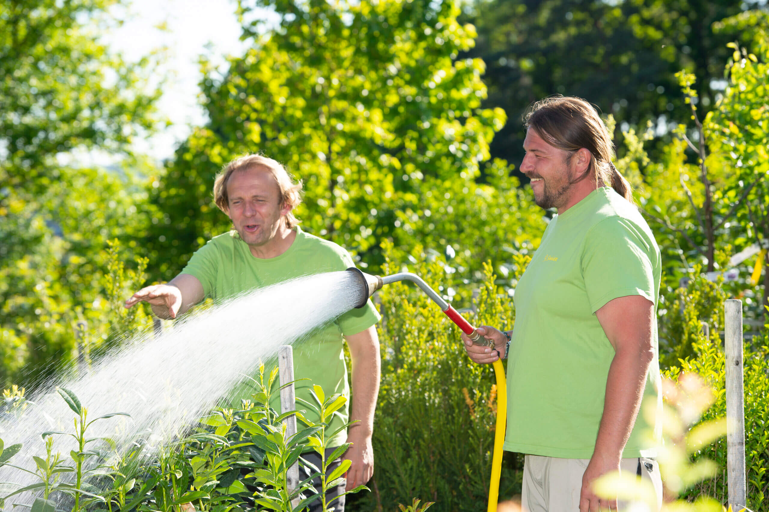 Firmeninhaber Markus Schiller ist im Betrieb als Landschaftsplaner für die Ausführung von Gärten und Grünanlagen verantwortlich. Während sich sein Bruder Florian um das Heranziehen von Pflanzen auf den eigenen Feldern kümmert.
