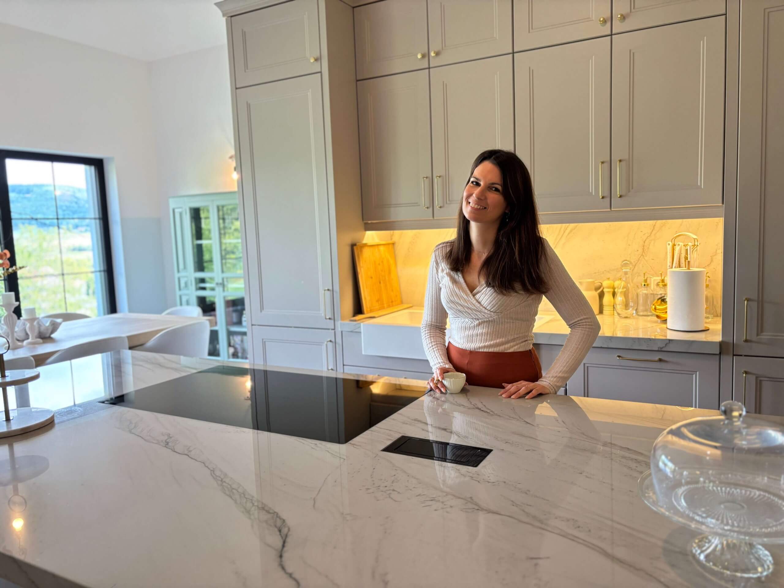 In der Küche verbringt Manuela Hopitzan viel Zeit – hier steht sie oft hinter der Insel und plaudert mit ihren Kindern.