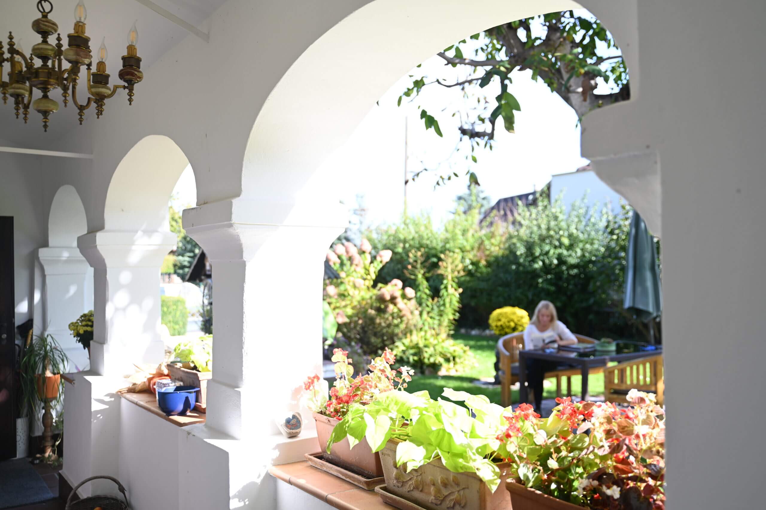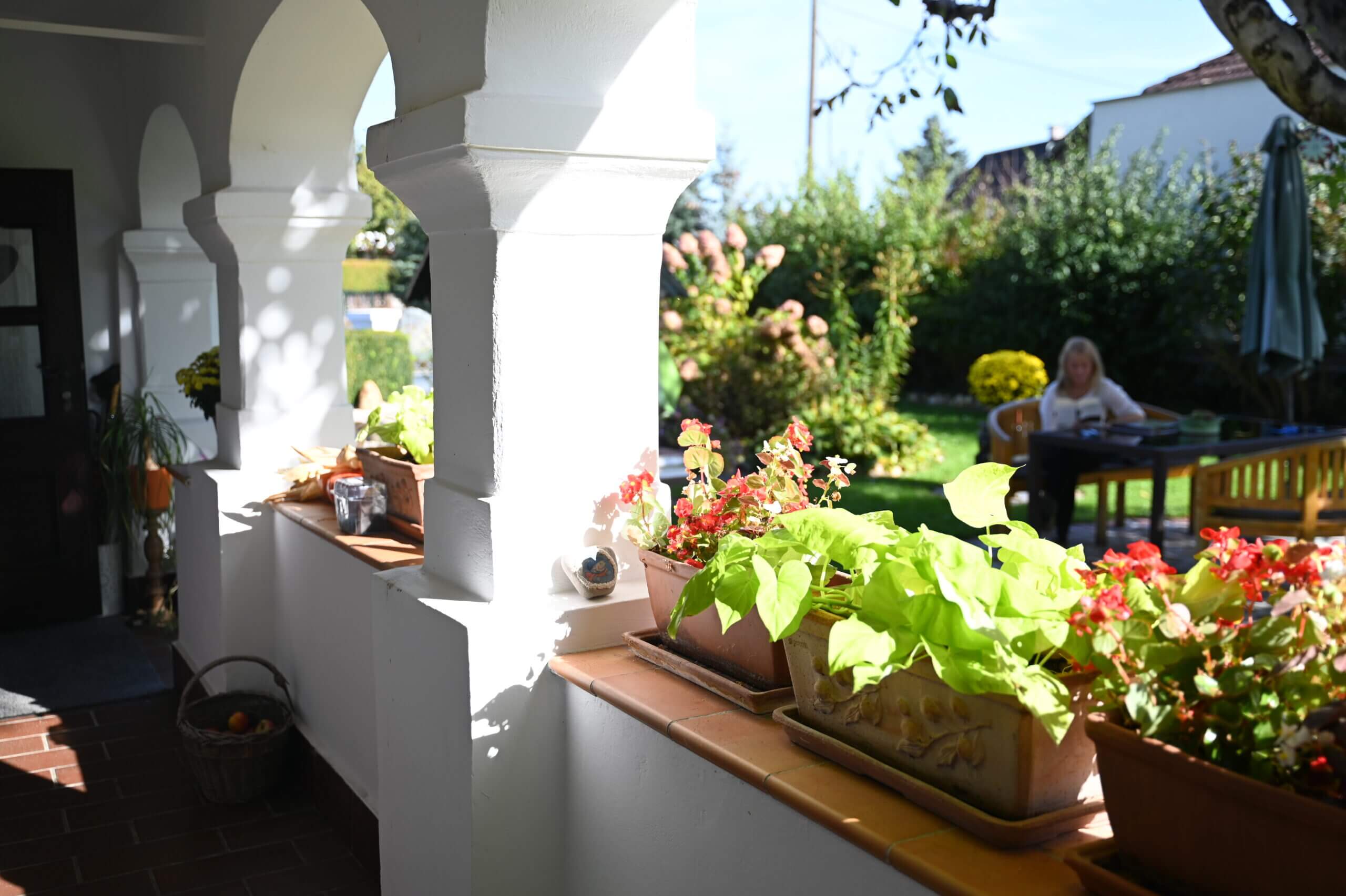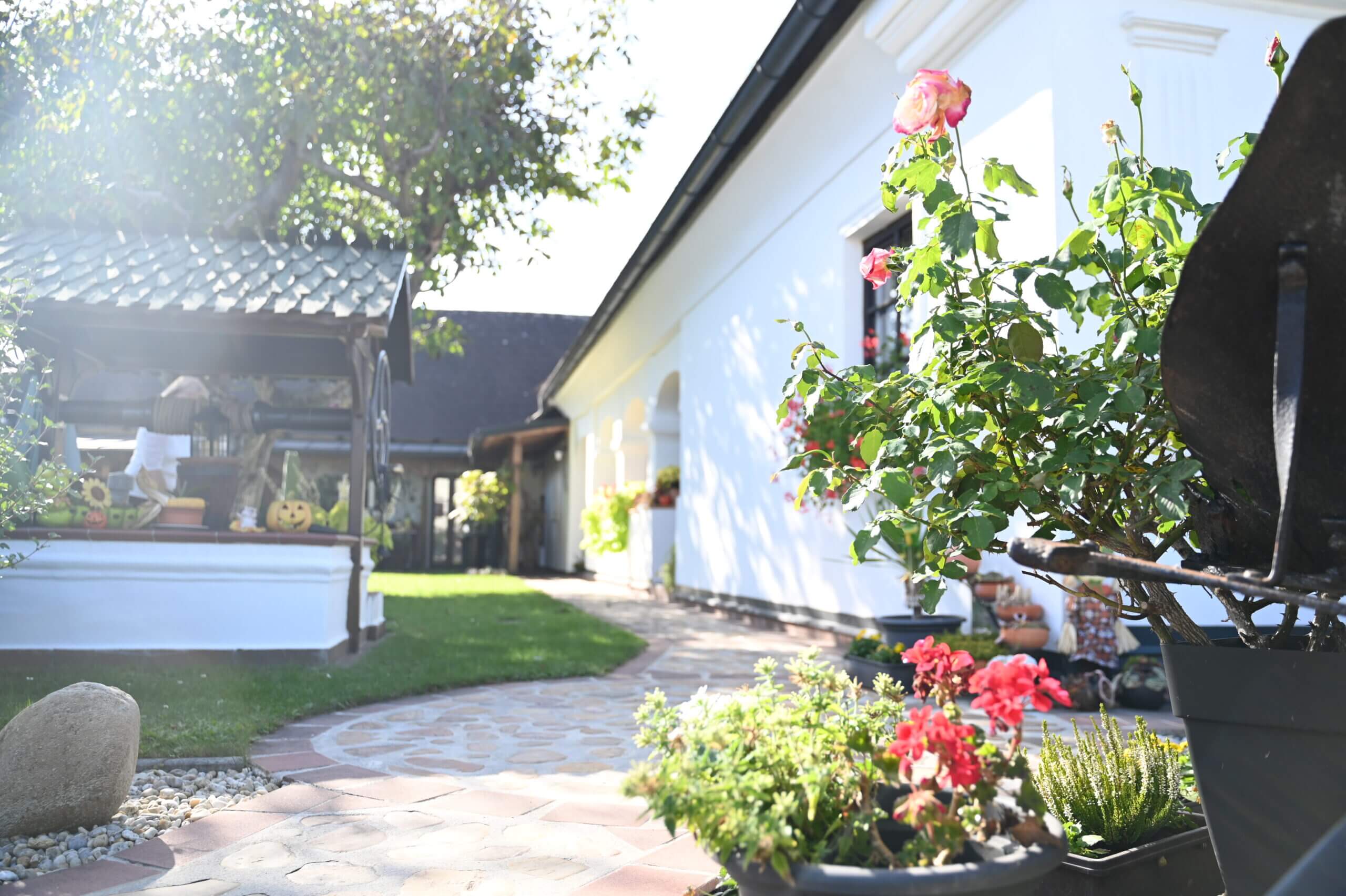 Auch die ehemaligen Stallungen, die Tenne und die Wirtschaftsräume wurden als Aufenthaltsraum, Pergola, Hobbyraum, Werkstatt und Garage umfunktioniert. Die charakteristischen Rundbögen, die Arkaden, sind der Blickfang des Streckhofes, an denen Blumentröge das Haus lebendig machen. Der Innenhof ist als Gartenoase rund um den alten Brunnen angelegt, auf den die Hobbygärtnerin besonders stolz ist: „Immer wieder machen Passanten Fotos und bewundern das Gesamtbild des alten Hauses!“